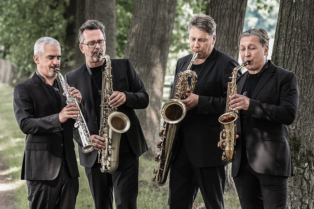 Blattwerk Saxophonquartett – das sind Alban Hauser (Sopran-Saxophon), Timur Isakov (Alt-Saxophon, Klarinette), Hartmut Salzmann (Tenor-Saxophon, Arrangements) und Ivan Jones (Bariton-Saxophon). Ihr Motto: Vier Freunde, vier Saxophone.